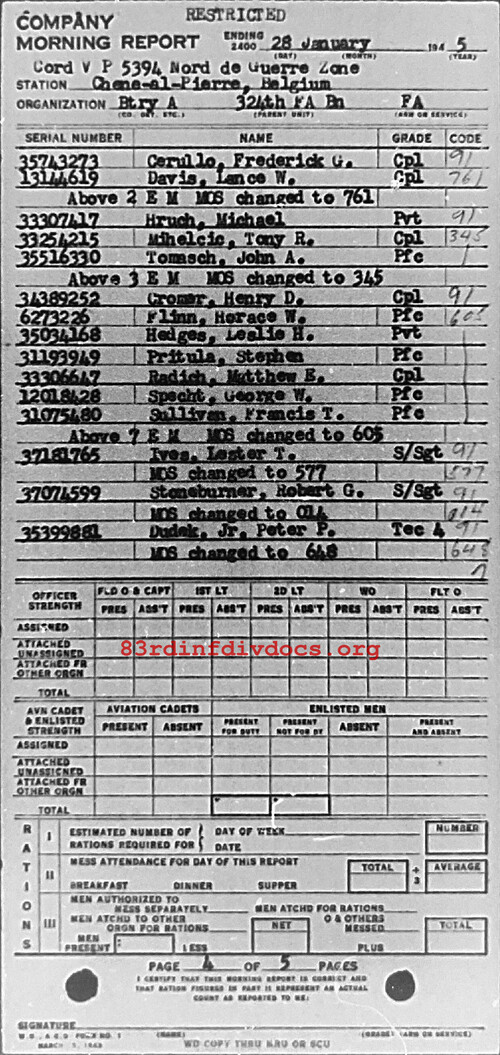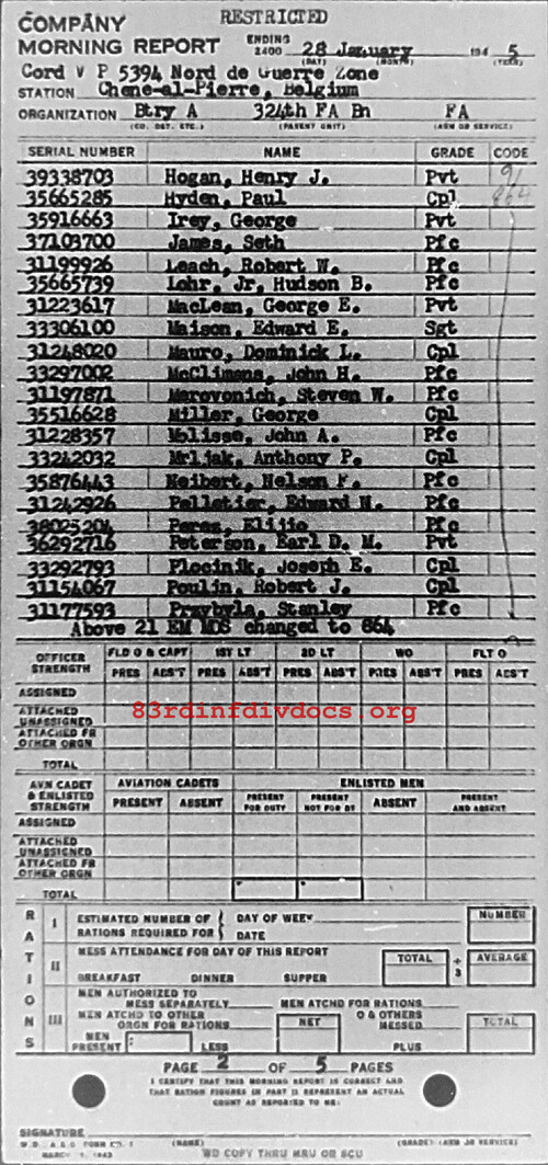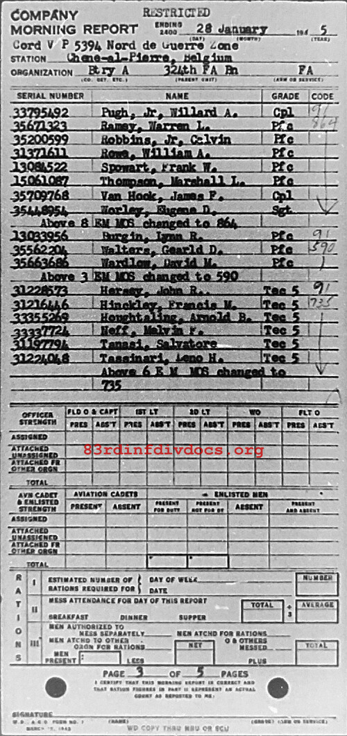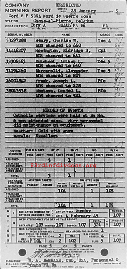 Morning report A/324FA for January 28, 1945