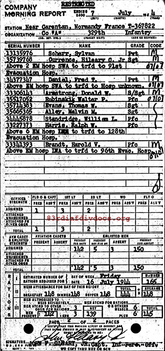 Morning report A/329 for July 7, 1944