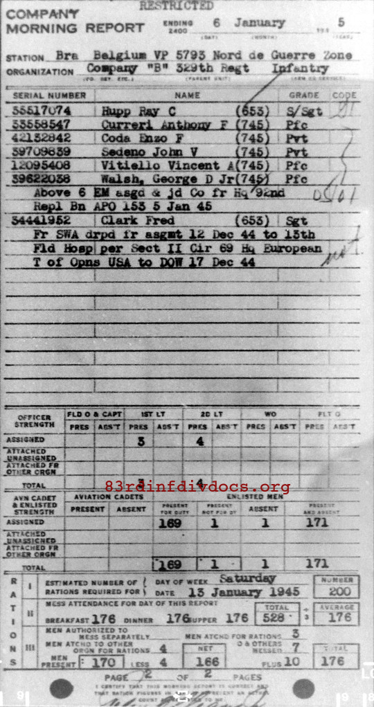 Morning report B/329 for January 6, 1945