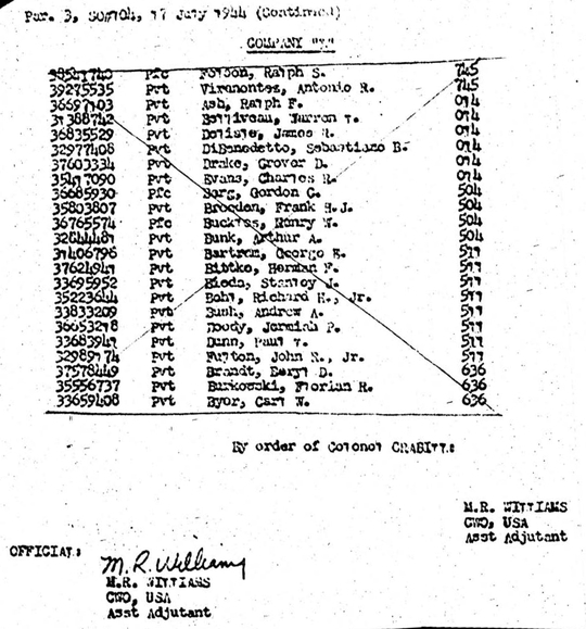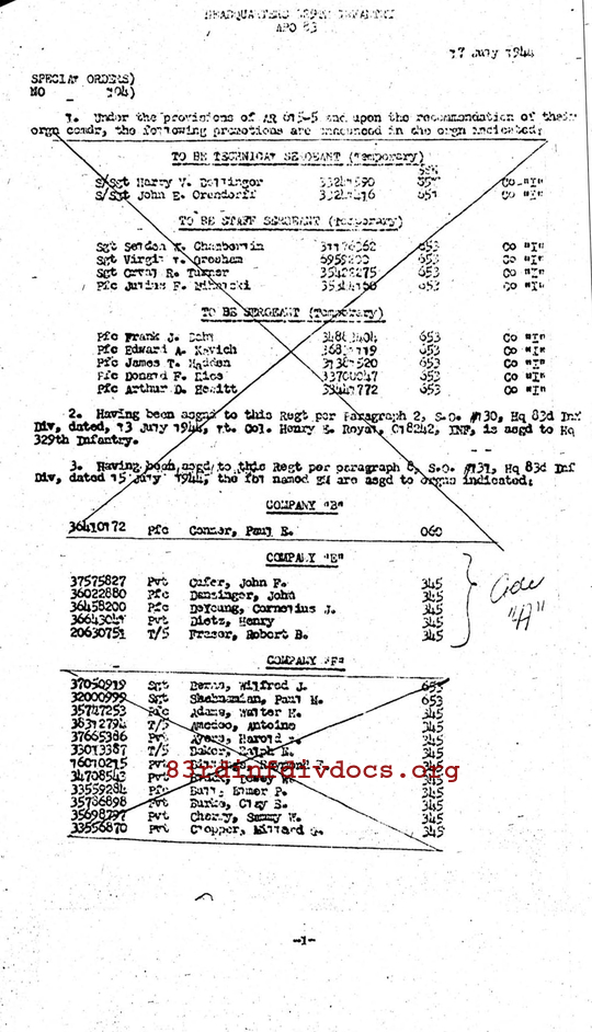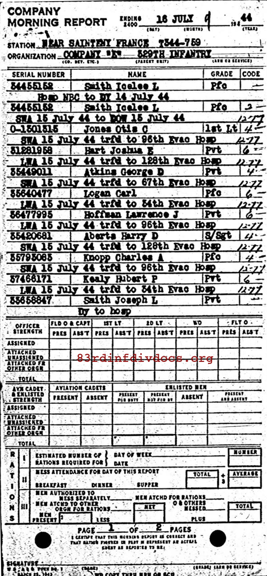 Morning report E/329 for July 16, 1944
