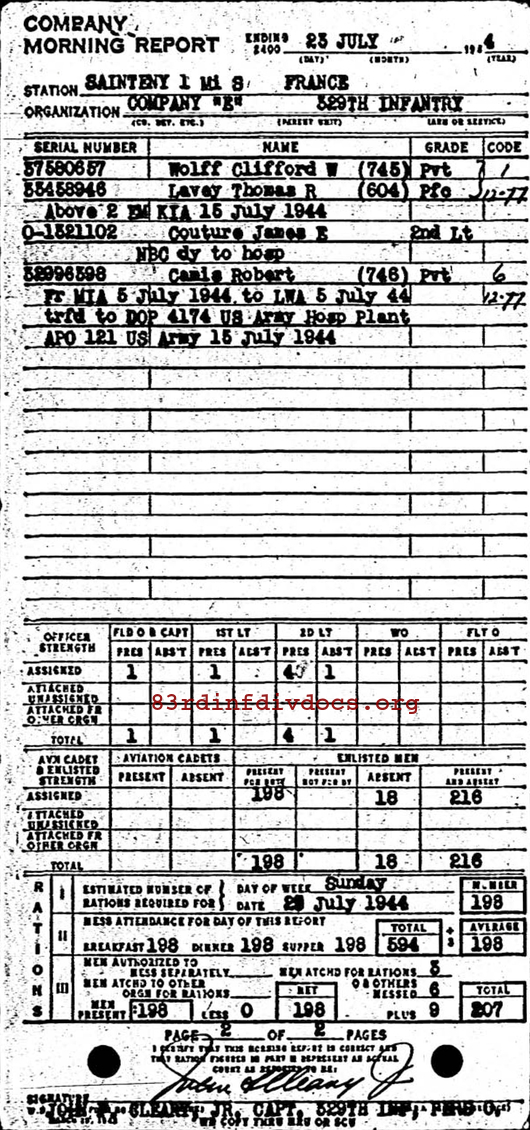 Morning report E/329 for July 23, 1944