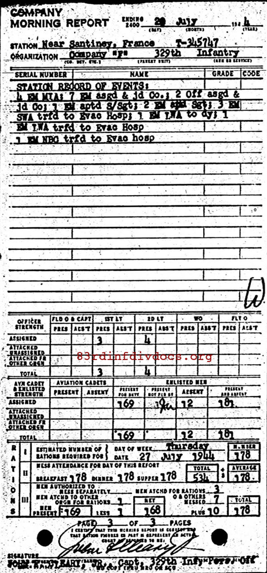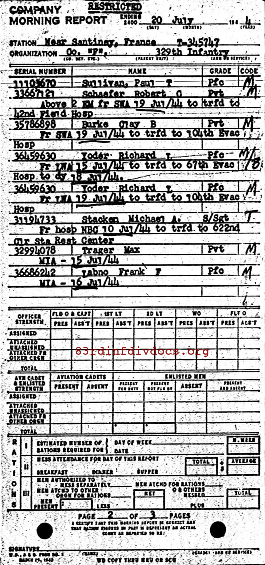 Morning report F/329 for July 20, 1944