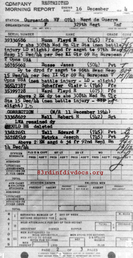 Morning report F/329 for December 16, 1944
