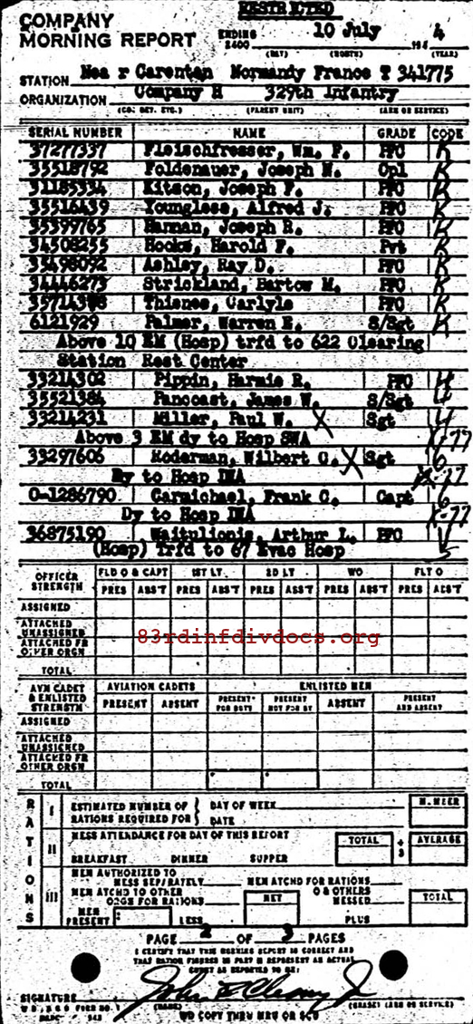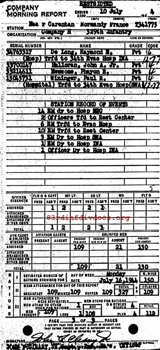 Morning report H/329 for July 10, 1944