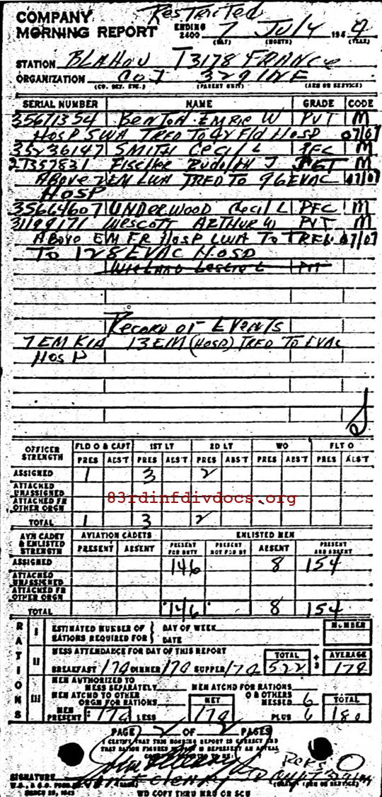 Morning report I/329 for July 7, 1944
