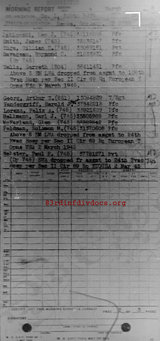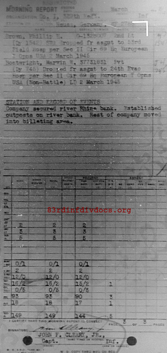 Morning report I/329 for March 4, 1945