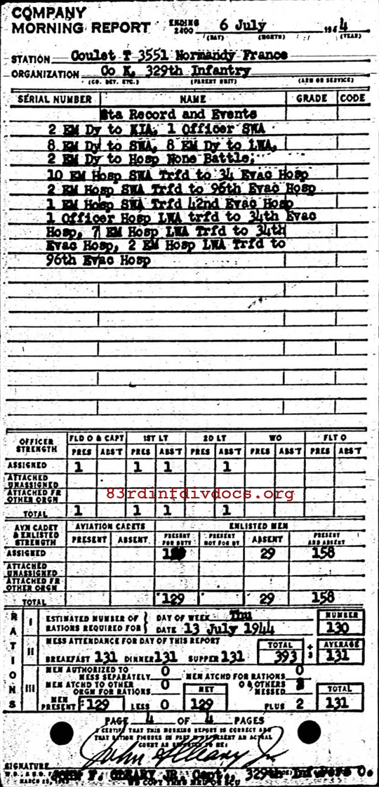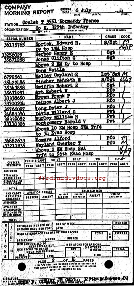 Morning report K/329 for July 6, 1944