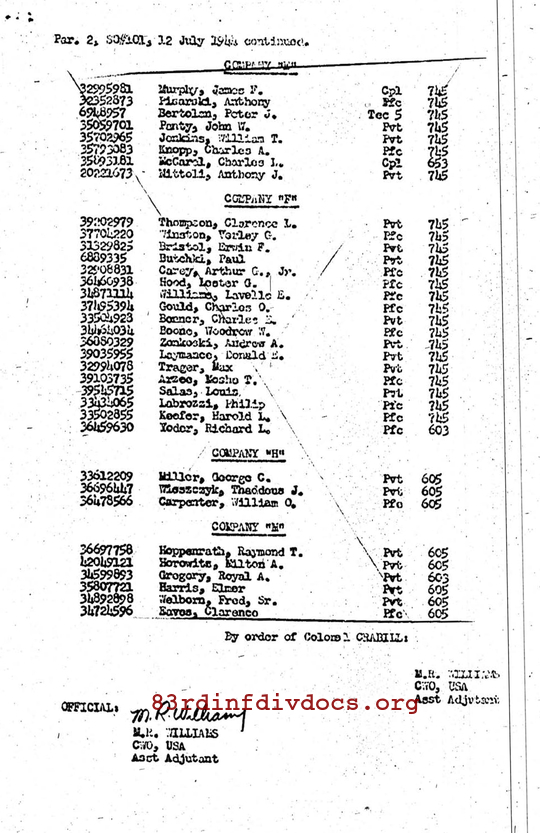 Morning report K/329 for July 12, 1944