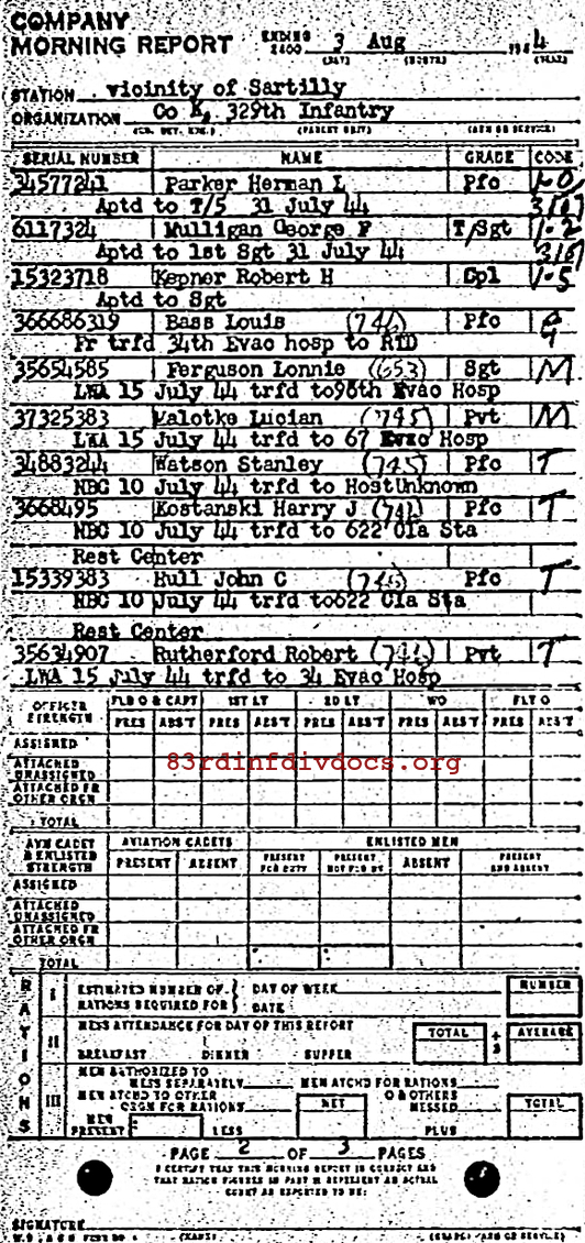 Morning report K/329 for August 3, 1944