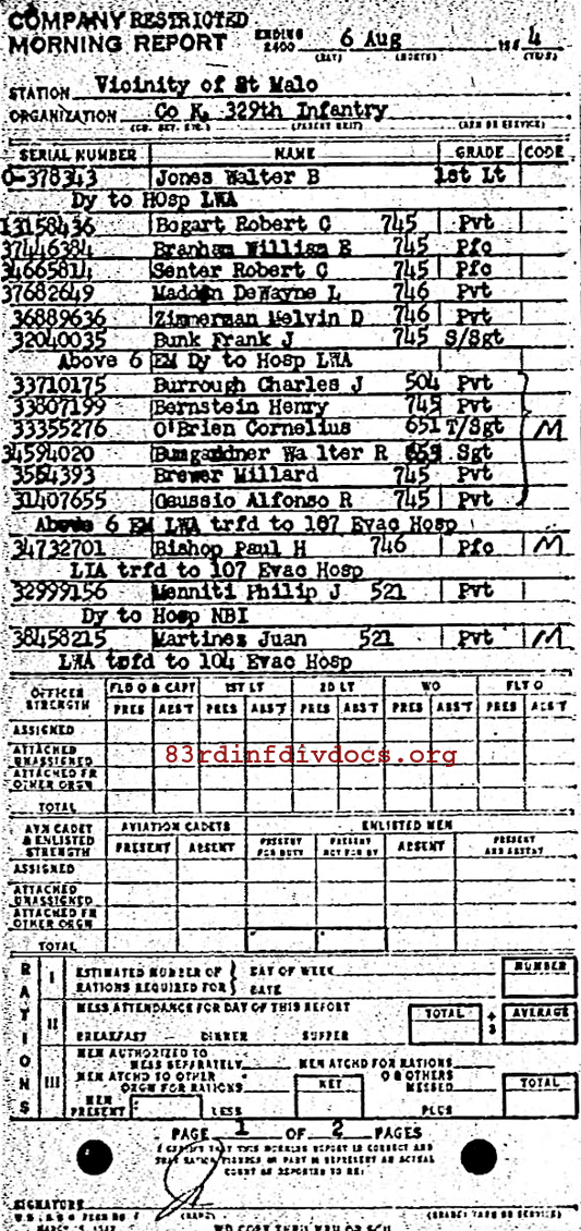 Morning report K/329 for August 6, 1944