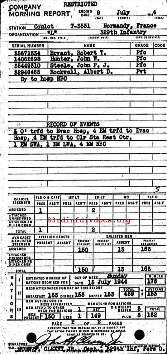 Morning report L/329 for July 9, 1944