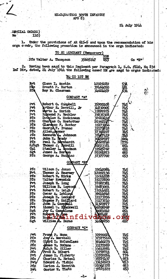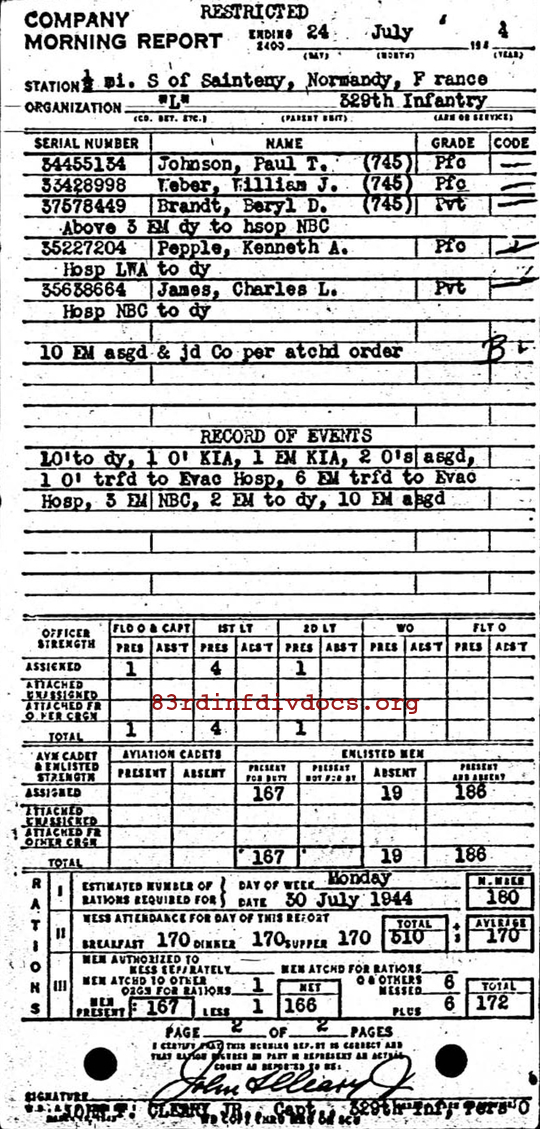 Morning report L/329 for July 24, 1944