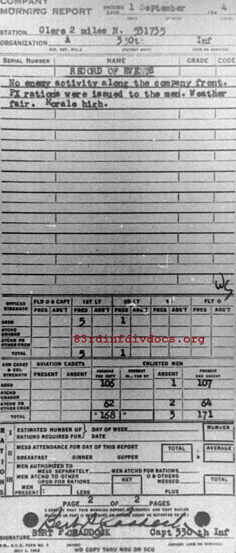 No enemy activity along the company front. PX rations were issued to the men. Weather fair. Morale high.