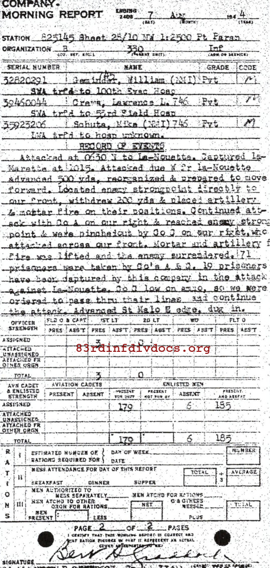 Morning report B/330 for August 7, 1944