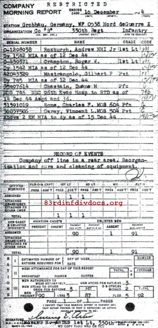 Company off line in a rear area. Reorganization and care and cleaning of equipment.
