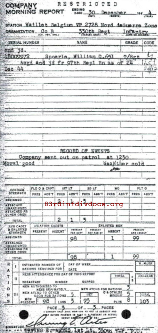 Ompany sent out on patrol at 1230. Moral good. Weather cold.