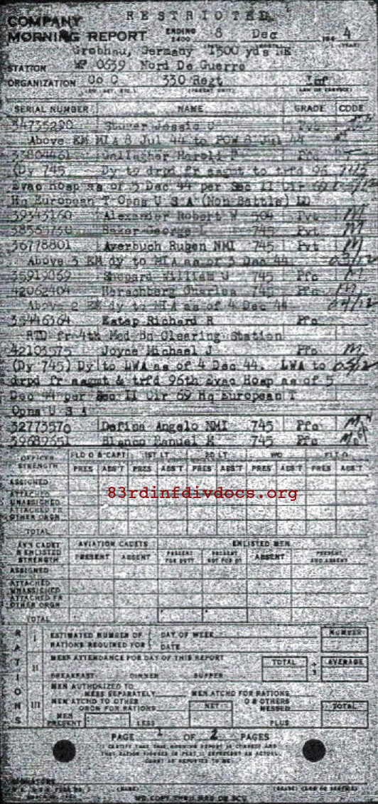 Morning report C/330 for December 8, 1944