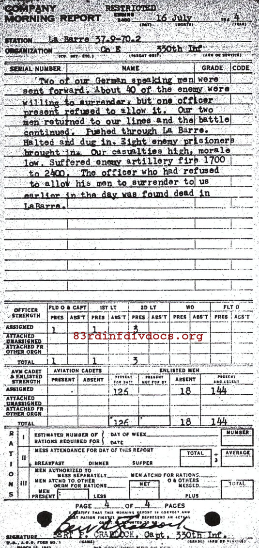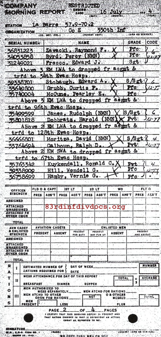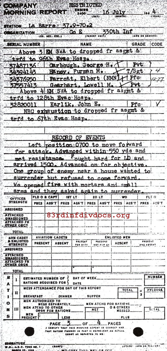 Morning report E/330 for July 16, 1944