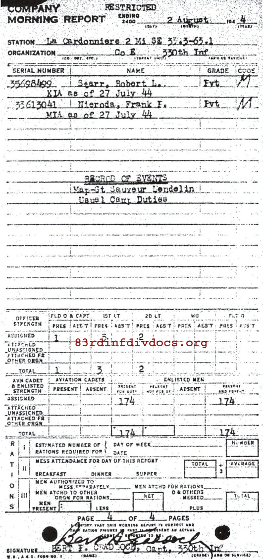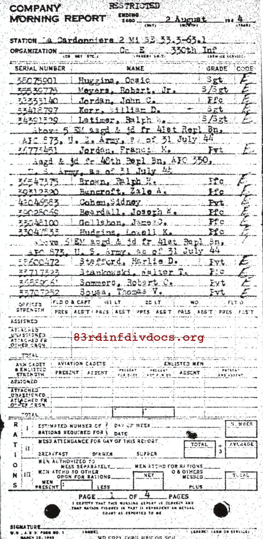 Morning report E/330 for August 2, 1944