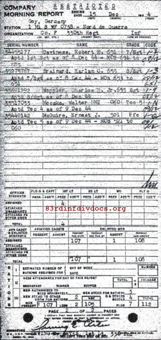 Morning report F/330 for December 15, 1944
