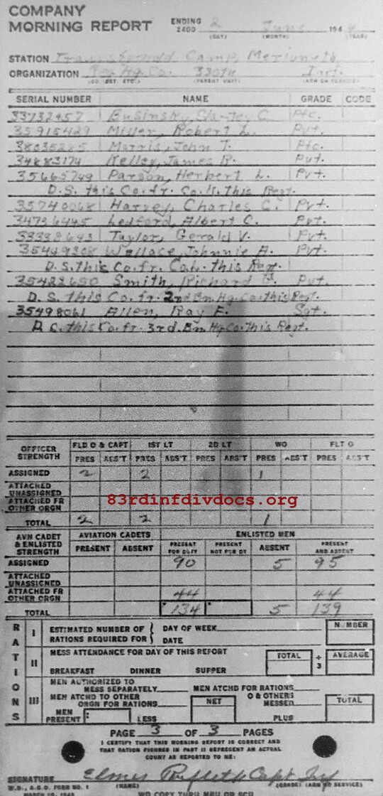 Morning report HQCO/330 for June 2, 1944