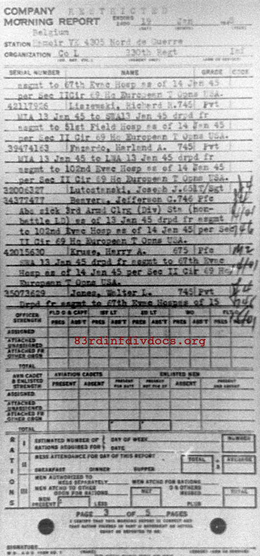 Morning report L/330 for January 19, 1945