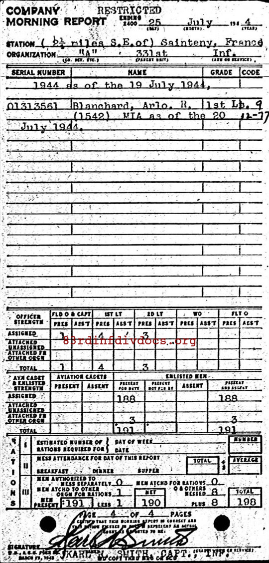 Morning report A/331 for July 25, 1944