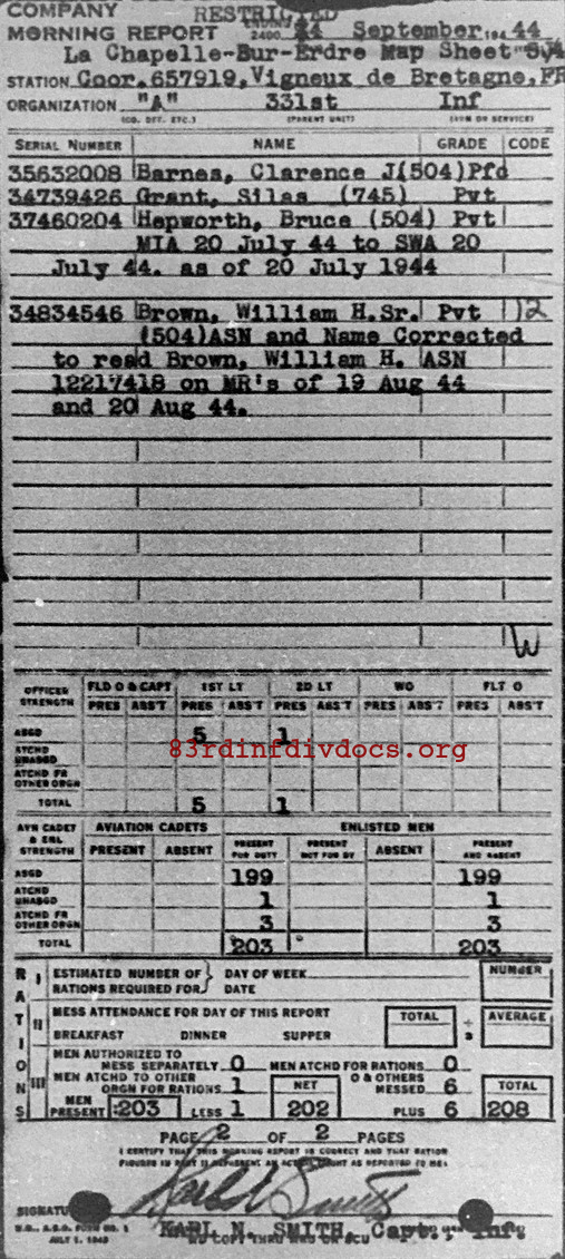 Morning report A/331 for September 4, 1944