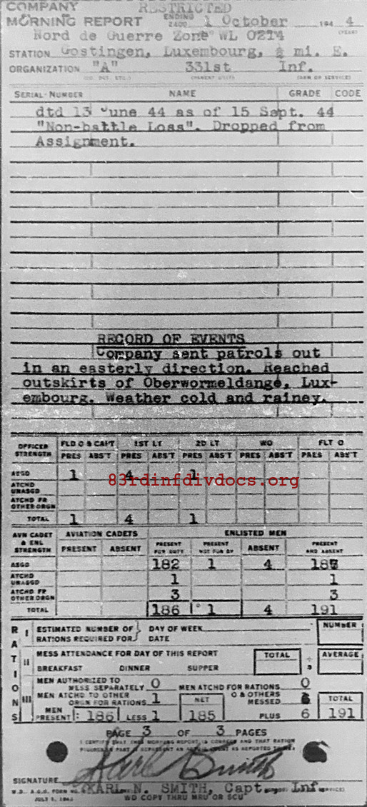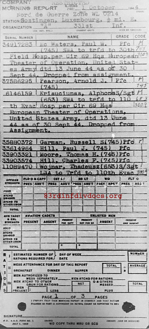 Morning report A/331 for October 1, 1944