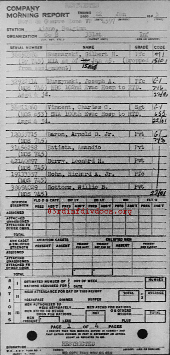 Morning report B/331 for January 22, 1945