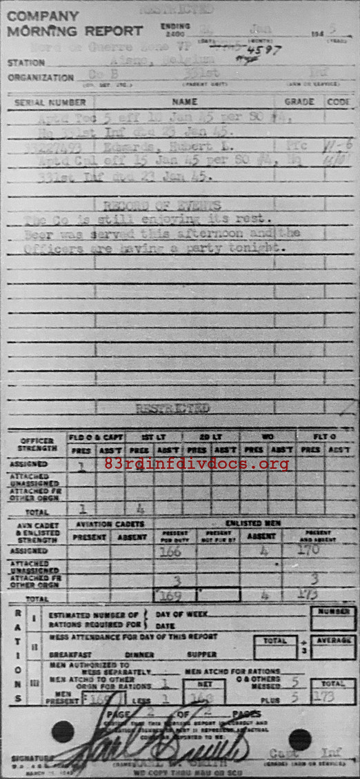 The Co is still enjoying its rest. Beer was served this afternoon and the Officers are having a party tonight,