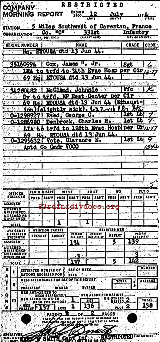 Morning report C/331 for July 12, 1944