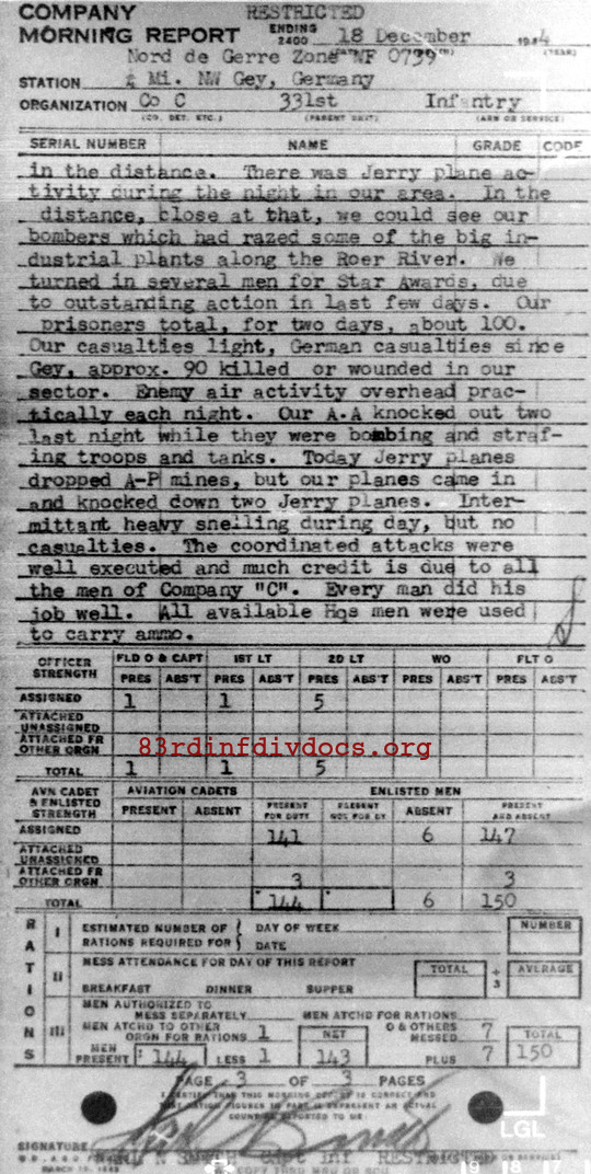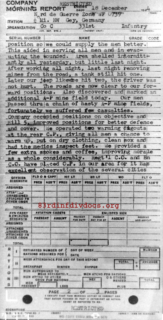 Morning report C/331 for December 18, 1944