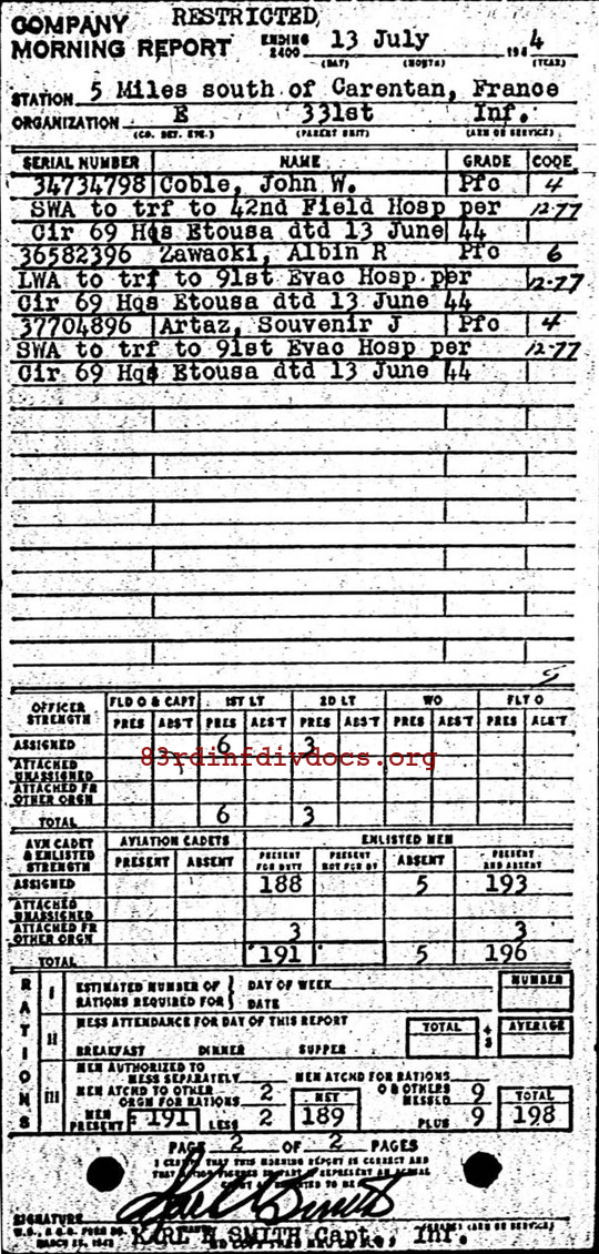 Morning report E/331 for July 13, 1944