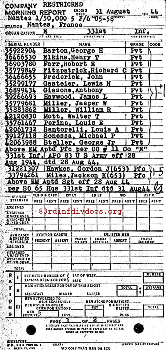Morning report E/331 for August 31, 1944