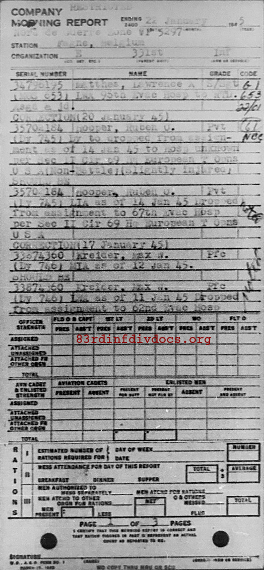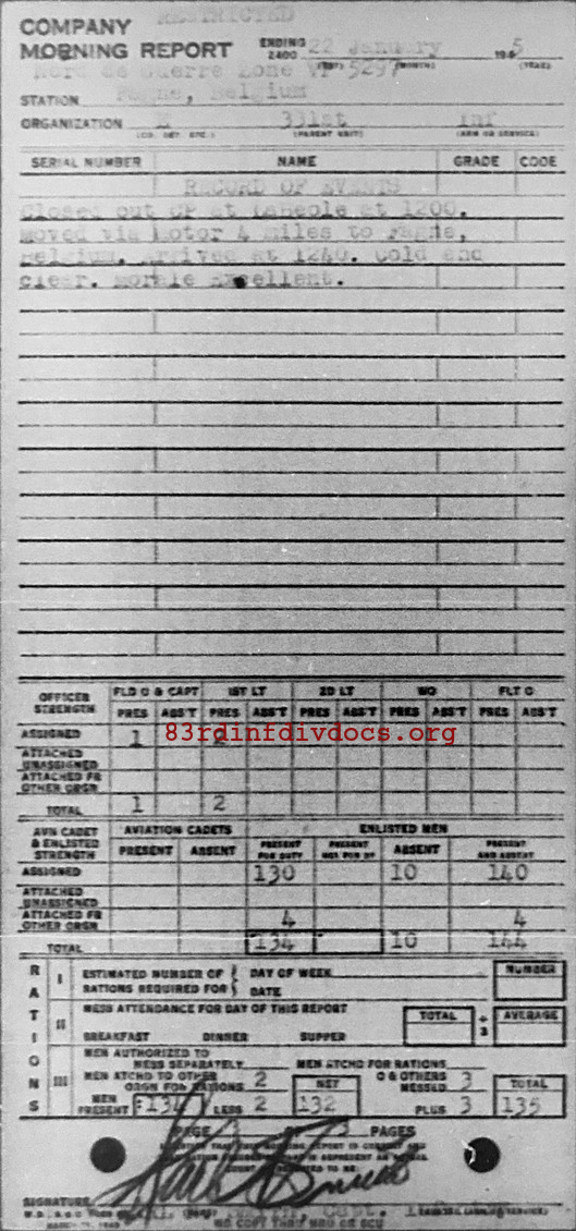 Morning report E/331 for January 22, 1945