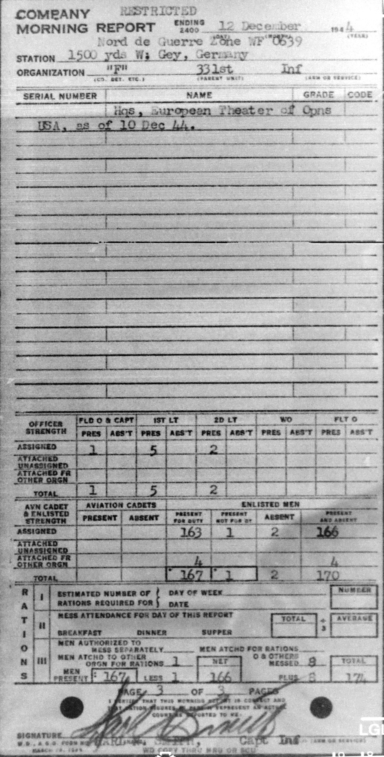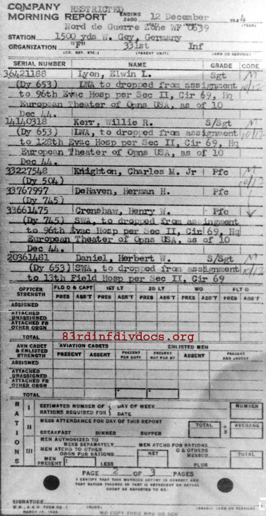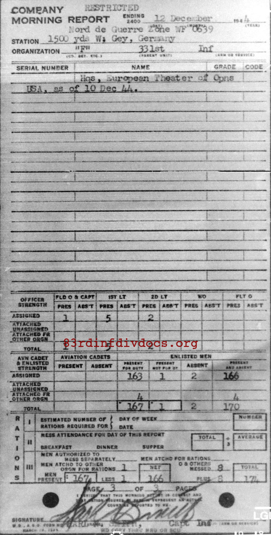Morning report F/331 for December 12, 1944