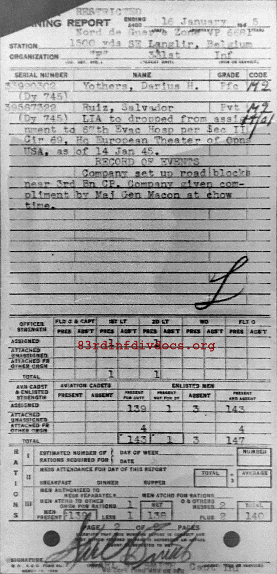 Company set up roadblocks near 3rd Bn CP. Company given compliment by Maj Gen Macon at chow time.