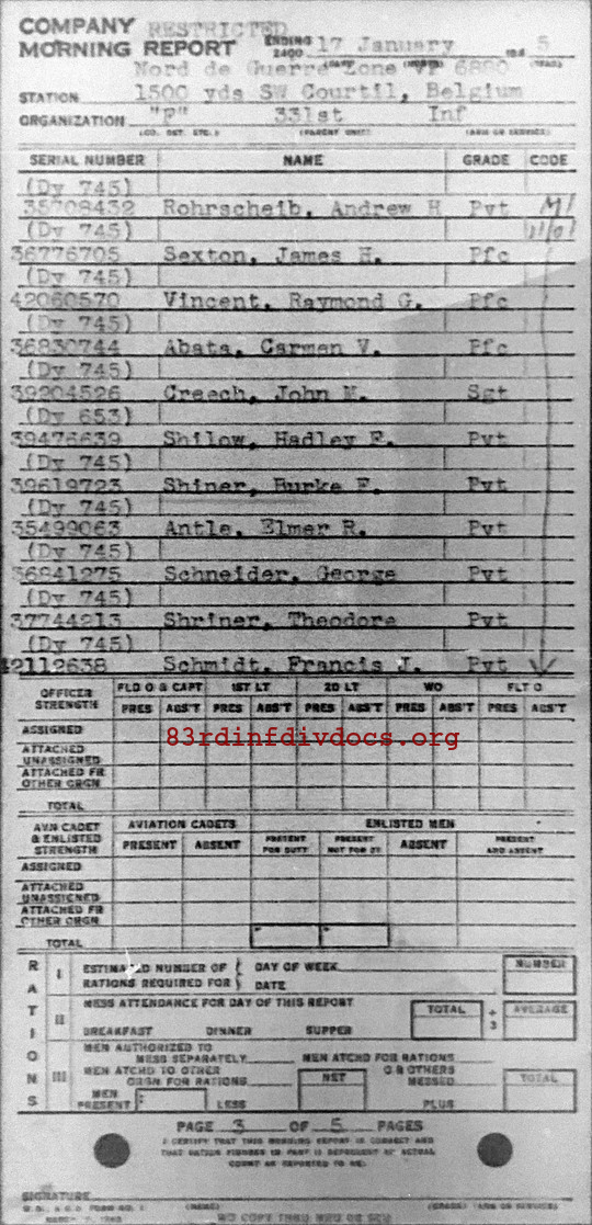 Morning report F/331 for January 17, 1945