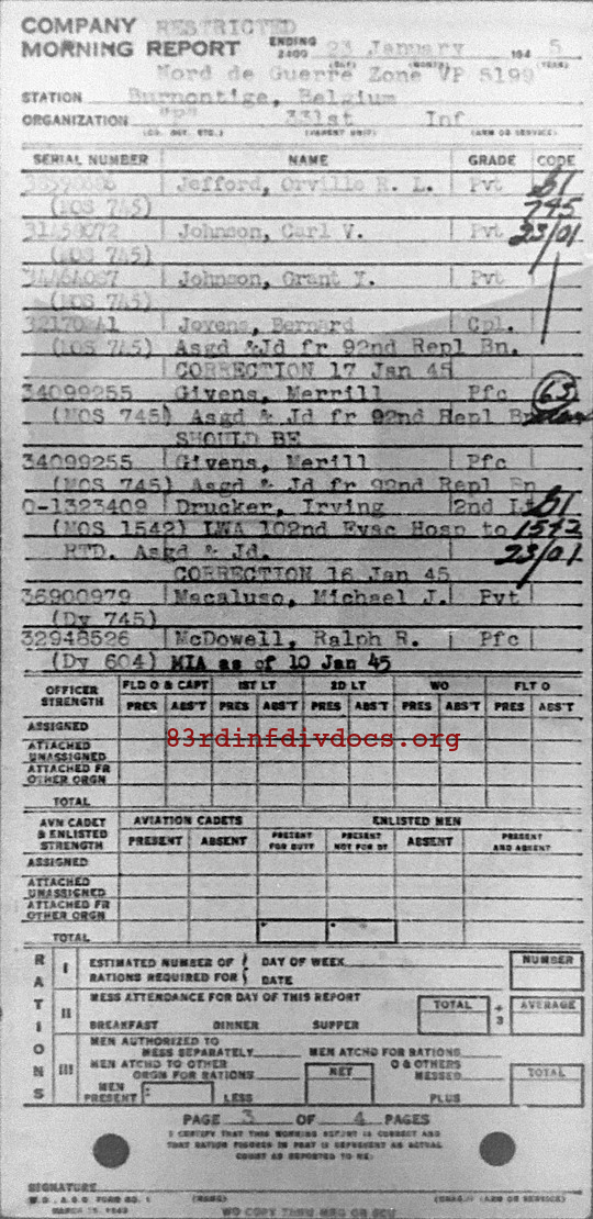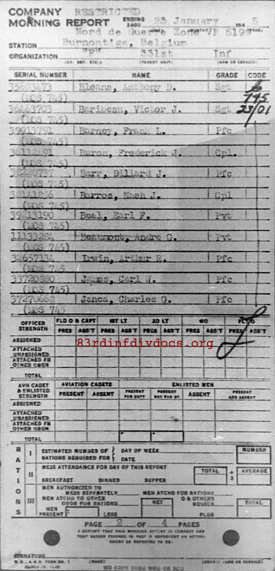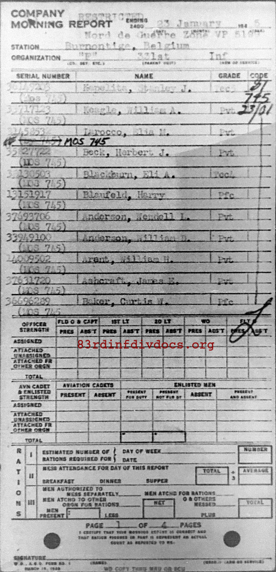Morning report F/331 for January 23, 1945
