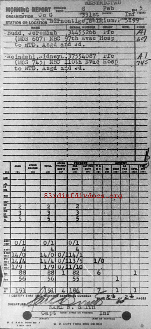 Morning report G/331 for February 8, 1945