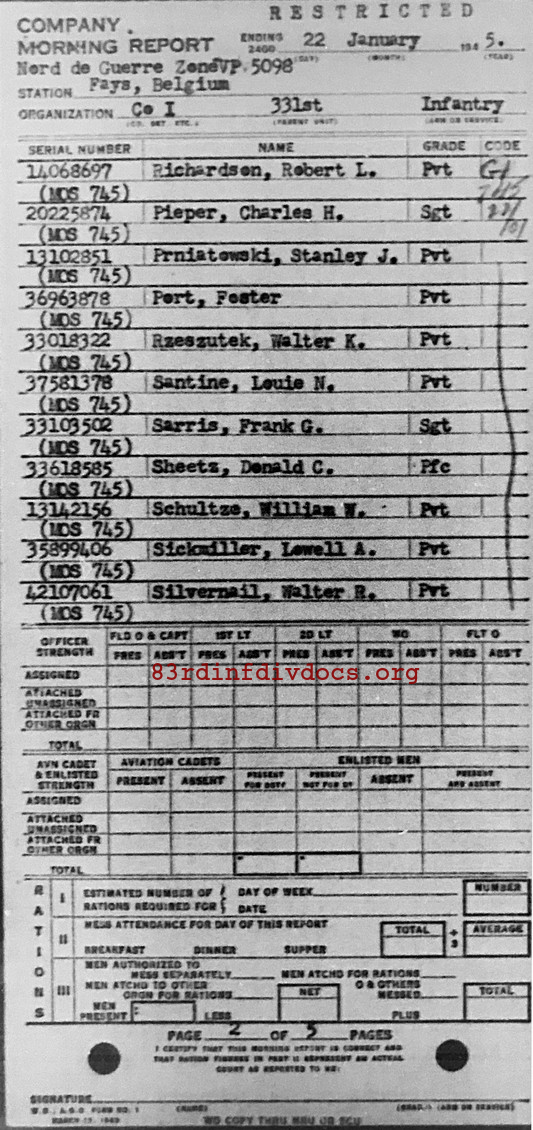 Morning report I/331 for January 22, 1945