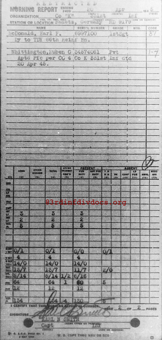 Morning report K/331 for April 20, 1945