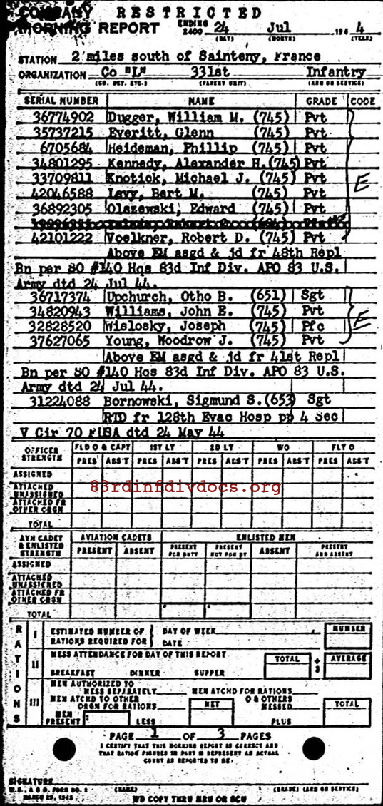 Morning report L/331 for July 24, 1944