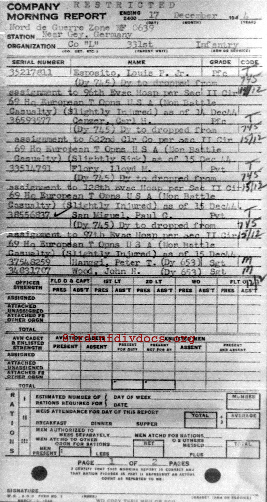 Morning report L/331 for December 17, 1944