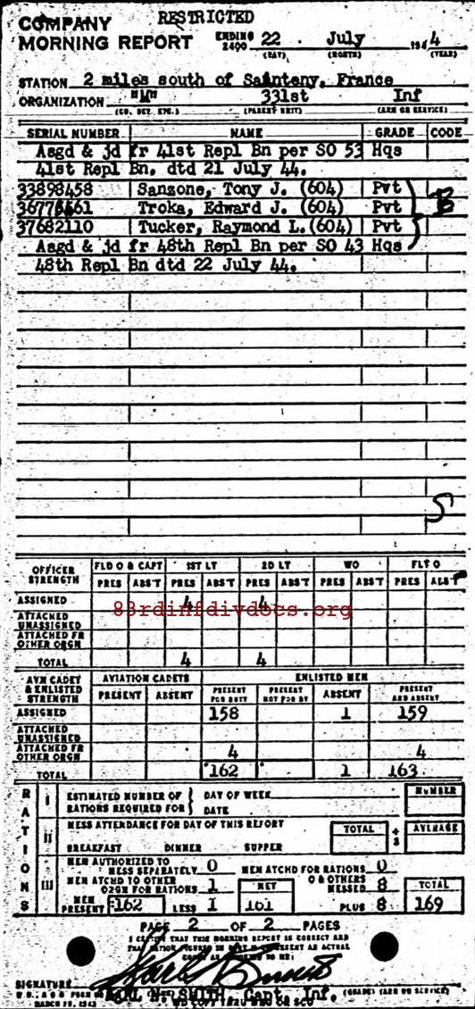 Morning report M/331 for July 22, 1944