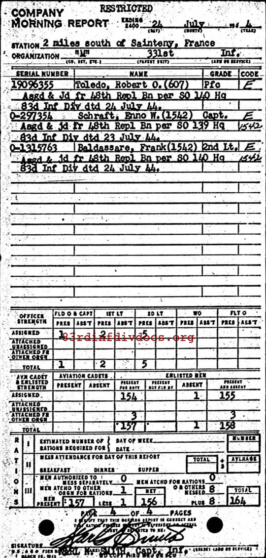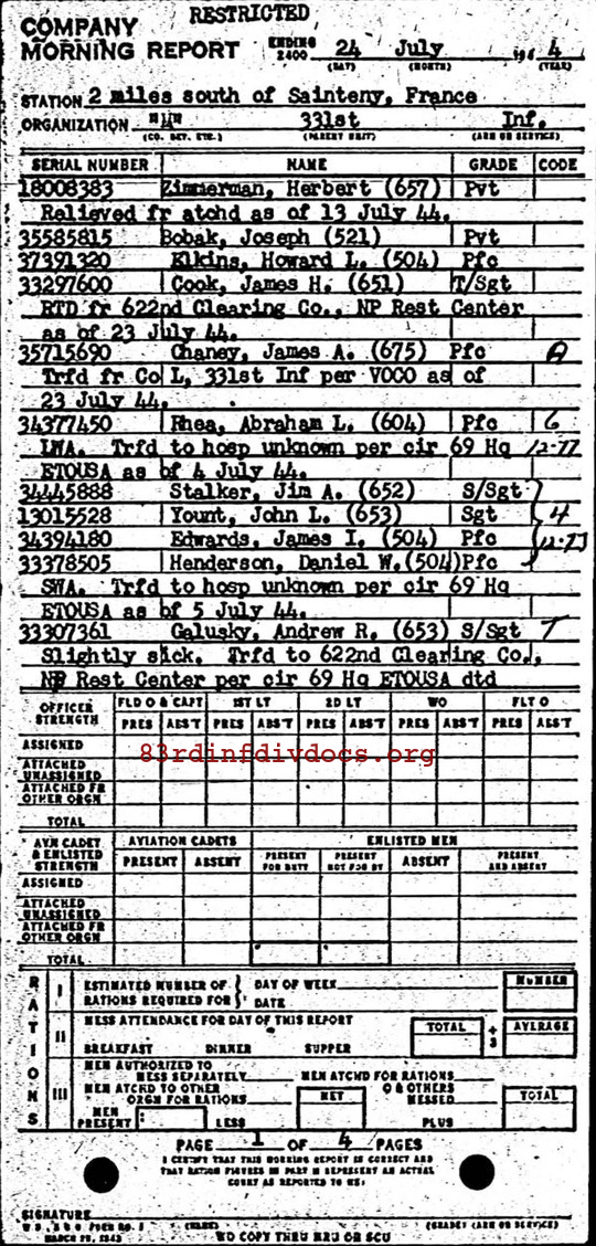 Morning report M/331 for July 24, 1944