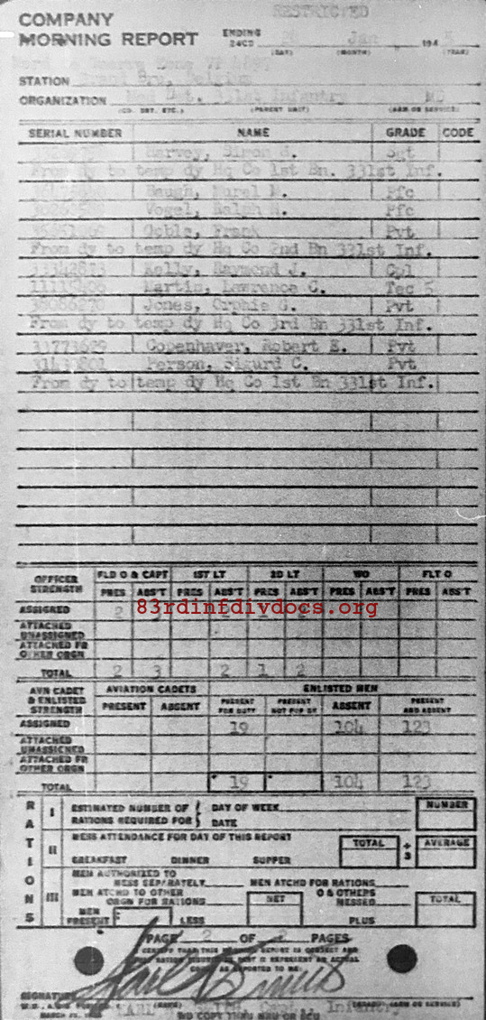 Morning report MEDDET/331 for January 28, 1945