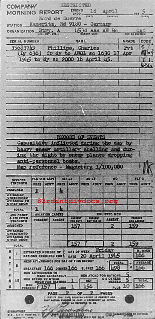 Morning report A/453AAA for April 18, 1945