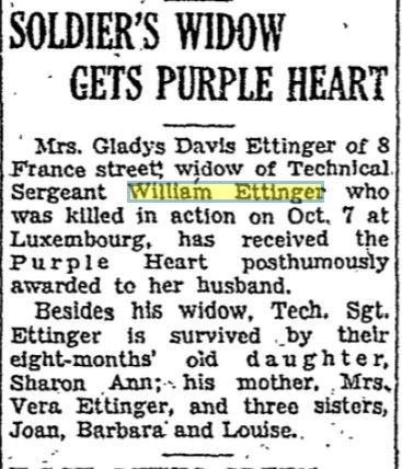| 1944-10-09 | TSGT | Killed in action on October 7, 1944 | 651 | K / 331 | view page |